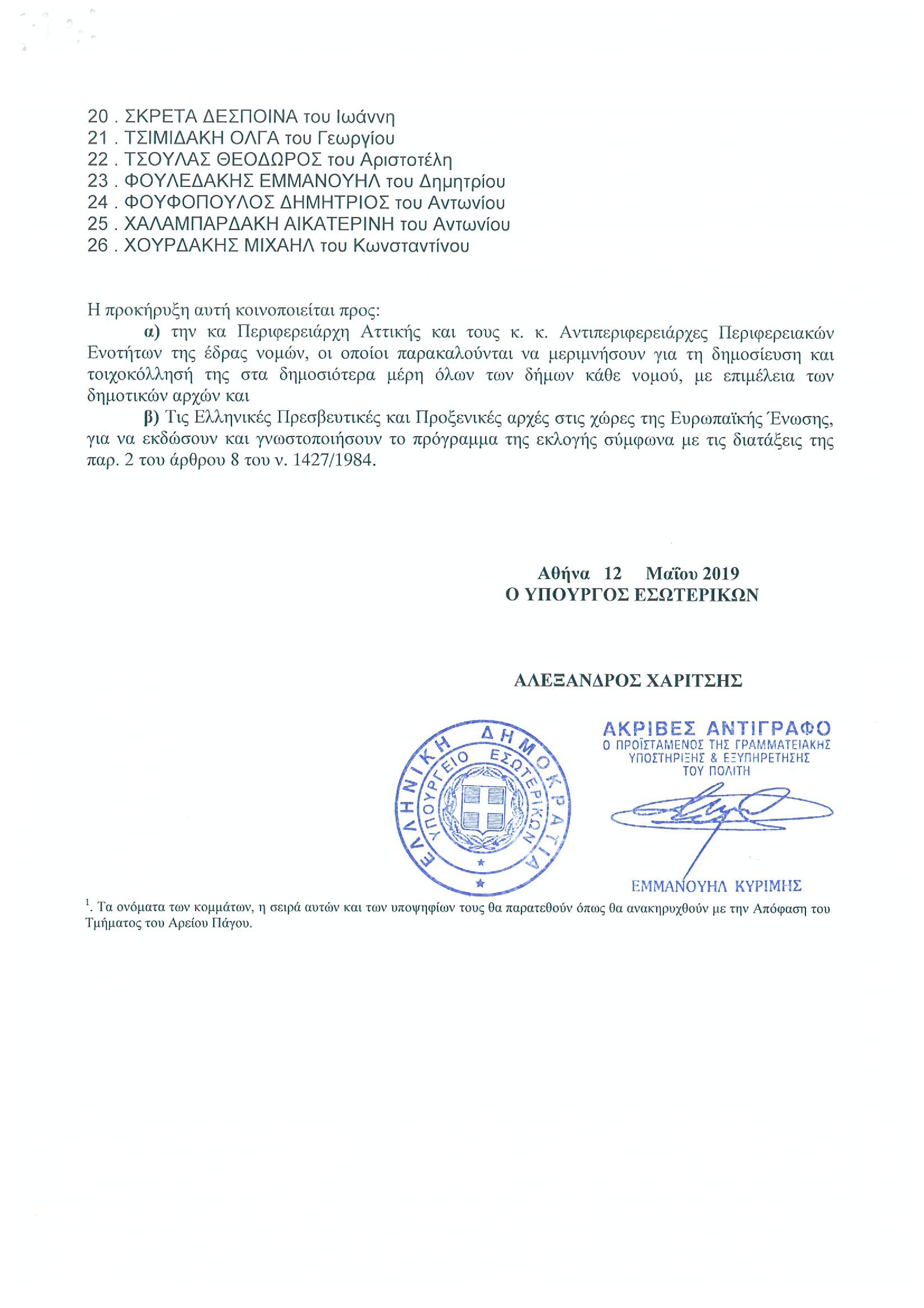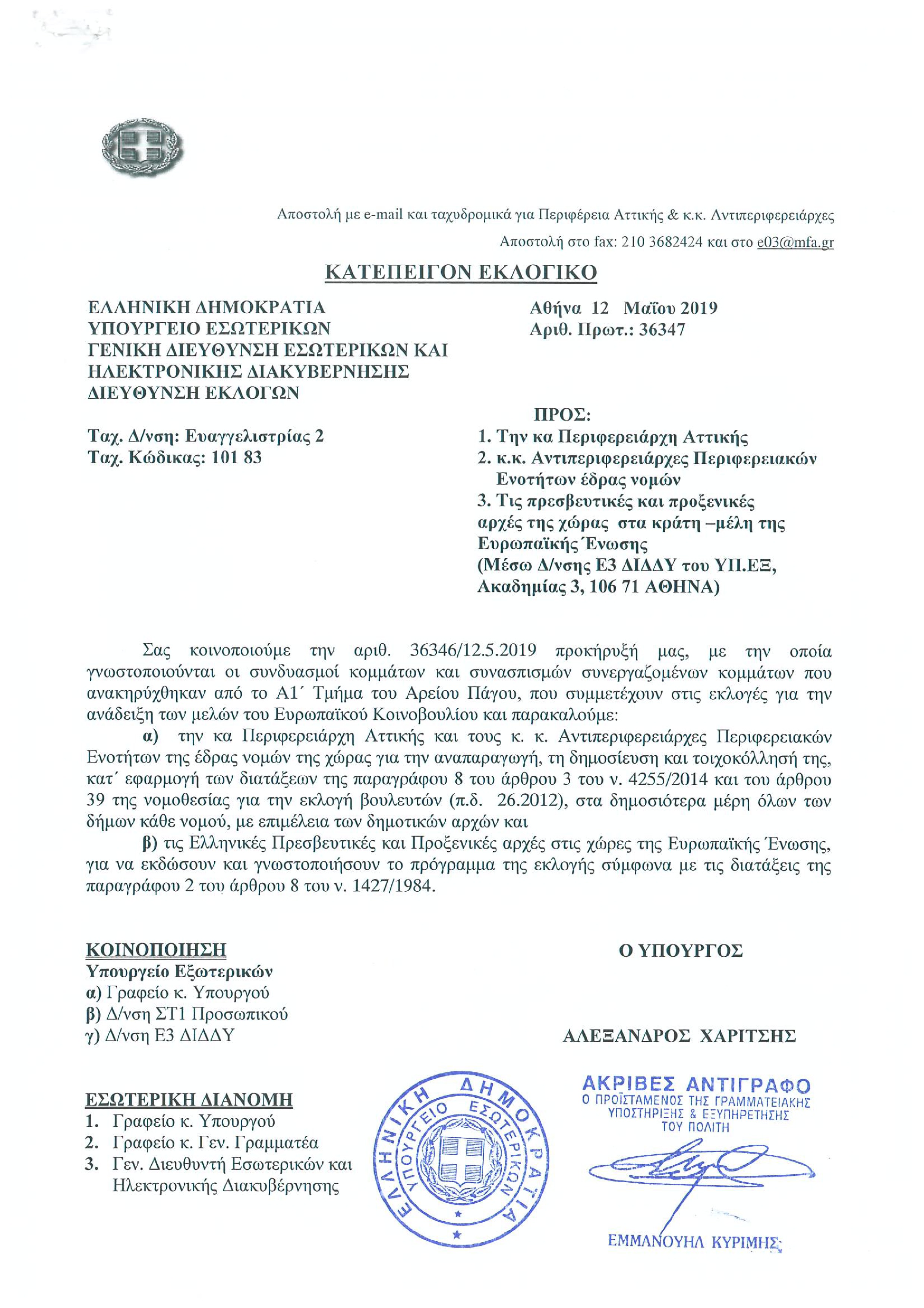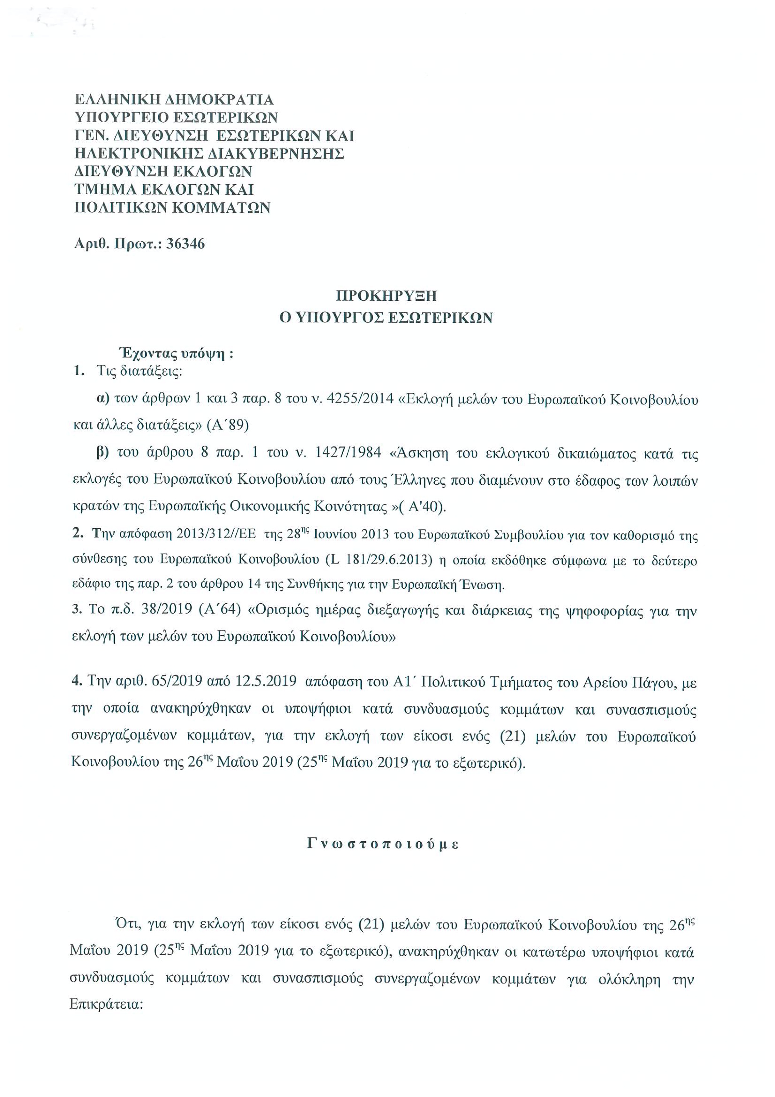 Ανακοίνωση υποψηφίων κομμάτων στις Ευρωεκλογές 2019