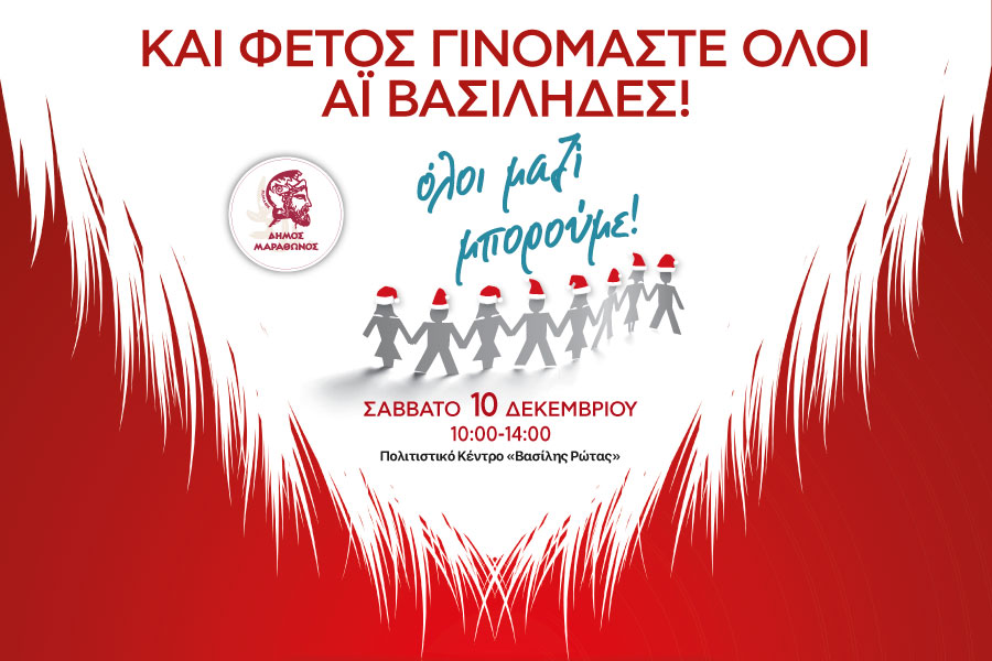 Ο Δήμος Μαραθώνος συμμετέχει, ενόψει των γιορτών, στην δράση του Όλοι Μαζί Μπορούμε και συγκεντρώνει χριστουγεννιάτικα δώρα για τα παιδιά των ευπαθών δημοτών μας. Η δράση θα πραγματοποιηθεί το Σάββατο 10 Δεκεμβρίου 2022 και ώρες 10.00-14.00 στο Πολιτιστικό Κέντρο «Βασίλης Ρώτας» στην πλατεία Νέας Μάκρης, οδός Ελ. Βενιζέλου 7A. Συγκεντρώνουμε παιχνίδια για παιδιά όλων των ηλικιών, παιδικά …