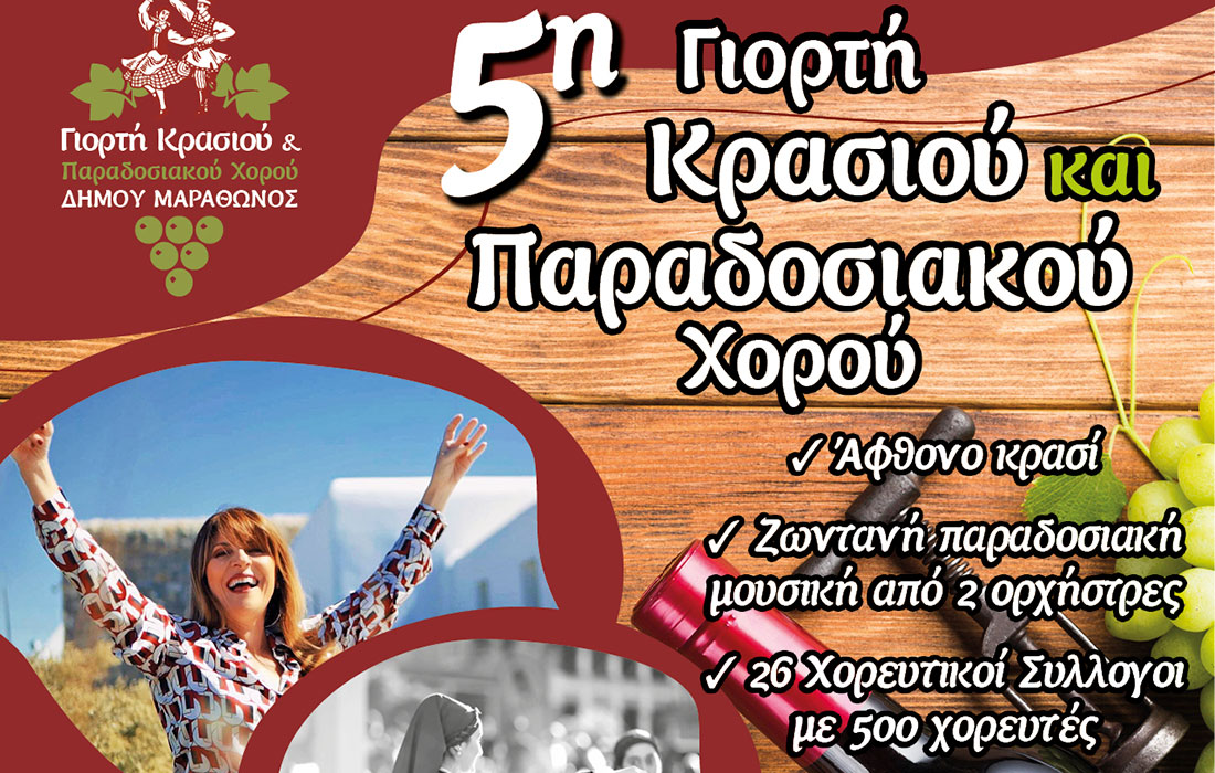 5η Γιορτή Κρασιού και Παραδοσιακού Χορού -το Σάββατο 28/9 (18:30) στην Αφετηρία Μαραθωνίου Δρόμου -ελεύθερη είσοδος για το κοινό