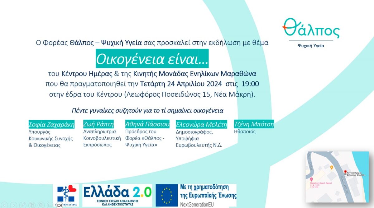 “Οικογένεια είναι…”: Μια ανοιχτή εκδήλωση στο “Θάλπος” στις 24 Απριλίου, με τη συμμετοχή και της Υπουργού Σοφίας Ζαχαράκη