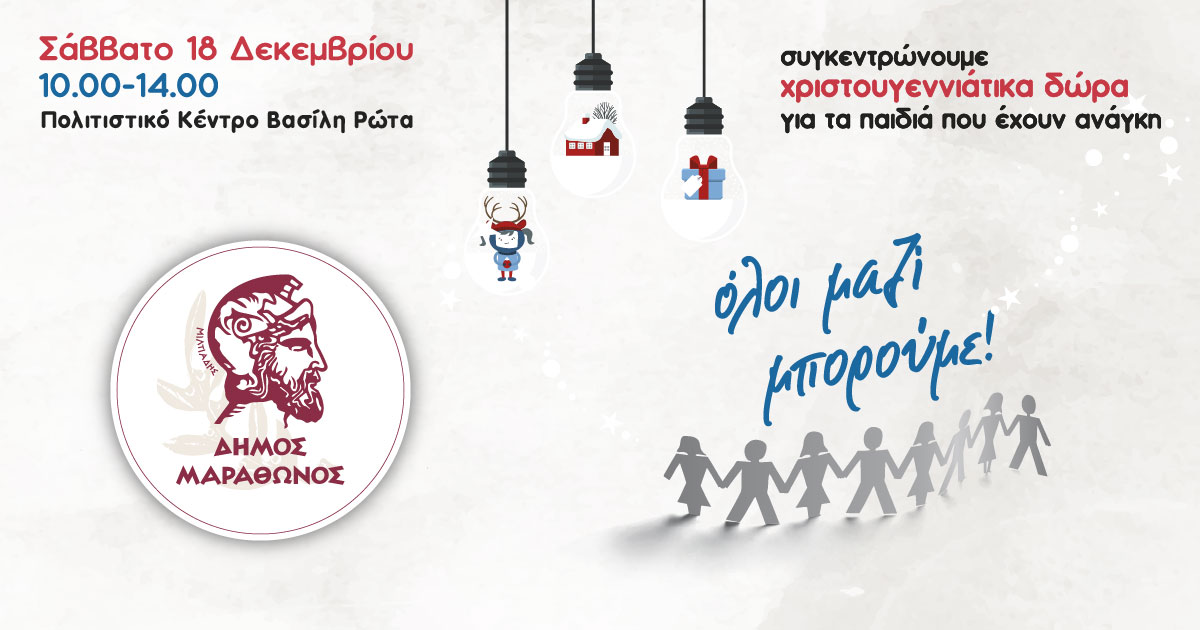 Συγκέντρωση Χριστουγεννιάτικων δώρων για τα παιδιά του Δήμου Μαραθώνος το Σάββατο 18 Δεκεμβρίου