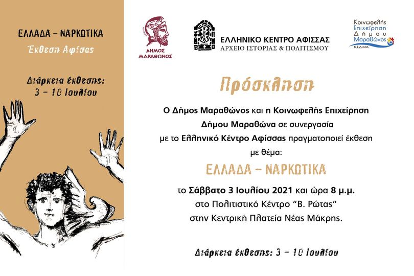 Ο Δήμος Μαραθώνος, σε συνεργασία με το Ελληνικό Κέντρο Αφίσας θα πραγματοποιήσει Έκθεση Αφίσας με θέμα: Ελλάδα-Ναρκωτικά στο Πολιτιστικό Κέντρο Β. Ρώτα (κεντρική πλατεία Νέας Μάκρης), το Σάββατο 3 Ιουλίου στις 8.00 μμ. Η έκθεση θα διαρκέσει μέχρι και το …