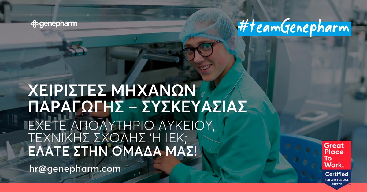 Προσλήψεις προσωπικού από τη φαρμακοβιομηχανία Genepharm