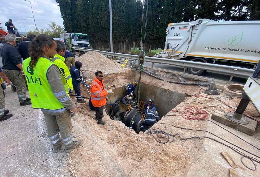 Συνεχίζονται με εντατικούς ρυθμούς οι εργασίες από την ΕΥΔΑΠ για την αποκατάσταση της βλάβης στον κεντρικό αγωγό της -ολοκληρώθηκαν σε 2 από τα 3 σημεία