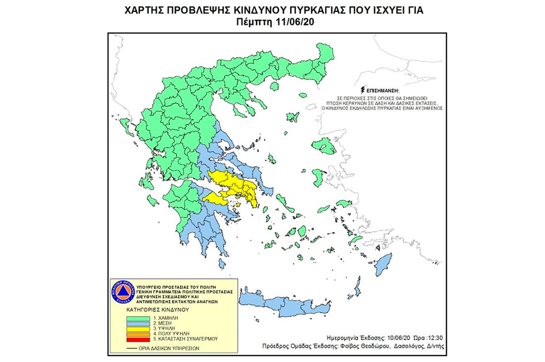 Ημερήσιος Χάρτης Πρόβλεψης Κινδύνου Πυρκαγιάς 12/06/2020