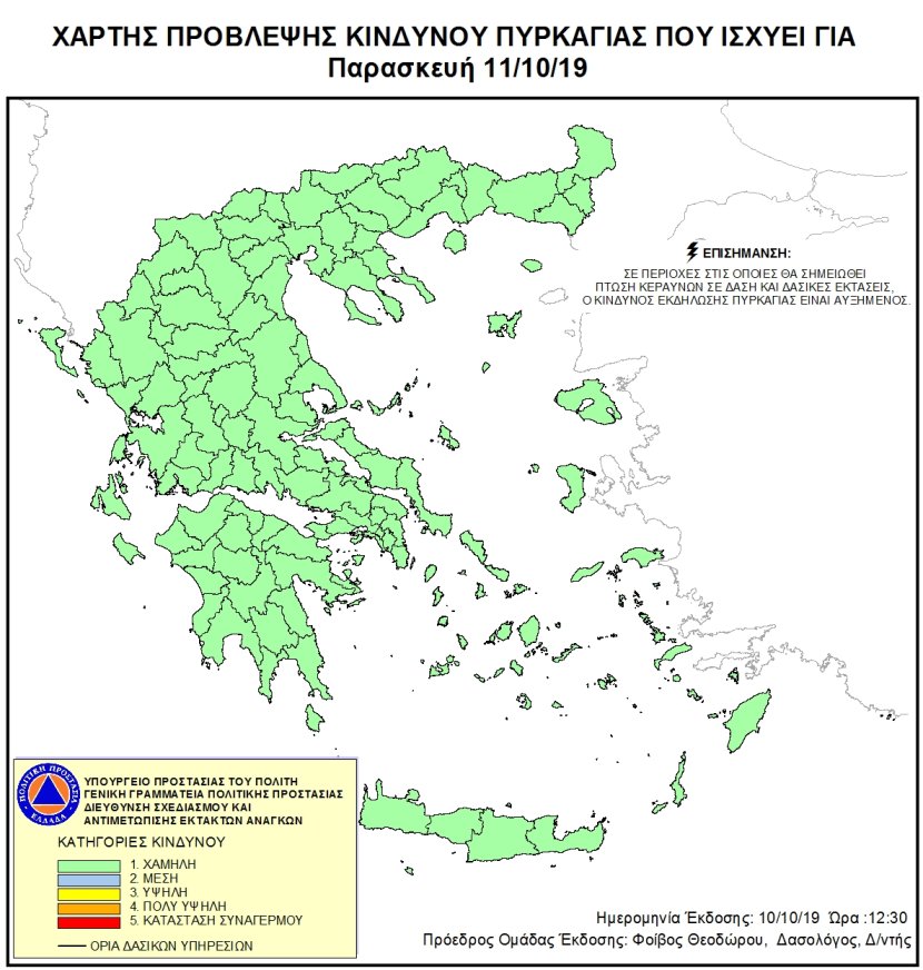 Ημερήσιος Χάρτης Πρόβλεψης Κινδύνου Πυρκαγιάς 11/10/2019