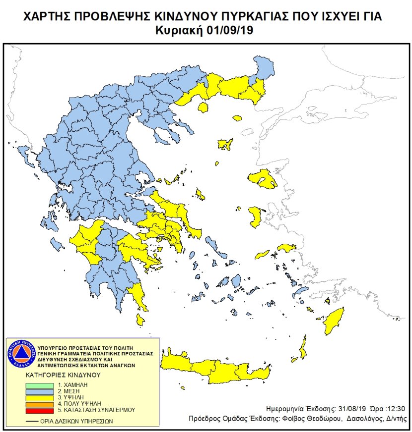 Ημερήσιος Χάρτης Πρόβλεψης Κινδύνου Πυρκαγιάς 01/09/2019