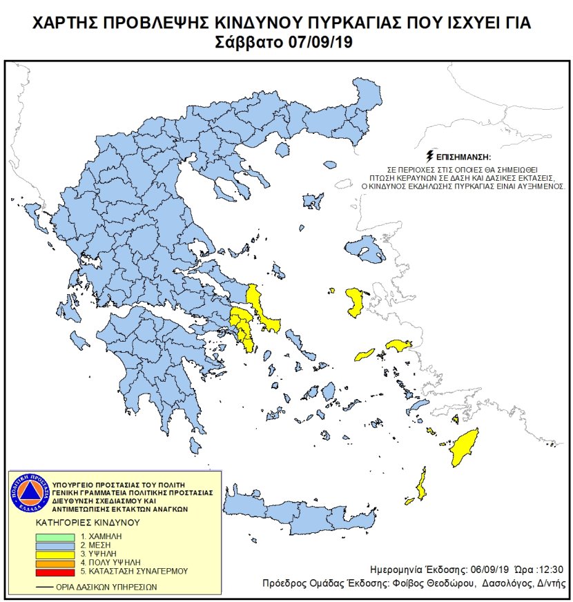 Ημερήσιος Χάρτης Πρόβλεψης Κινδύνου Πυρκαγιάς 06/09/2019
