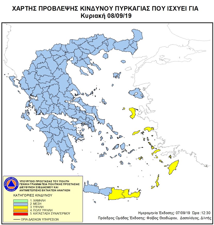 Ημερήσιος Χάρτης Πρόβλεψης Κινδύνου Πυρκαγιάς 07/09/2019