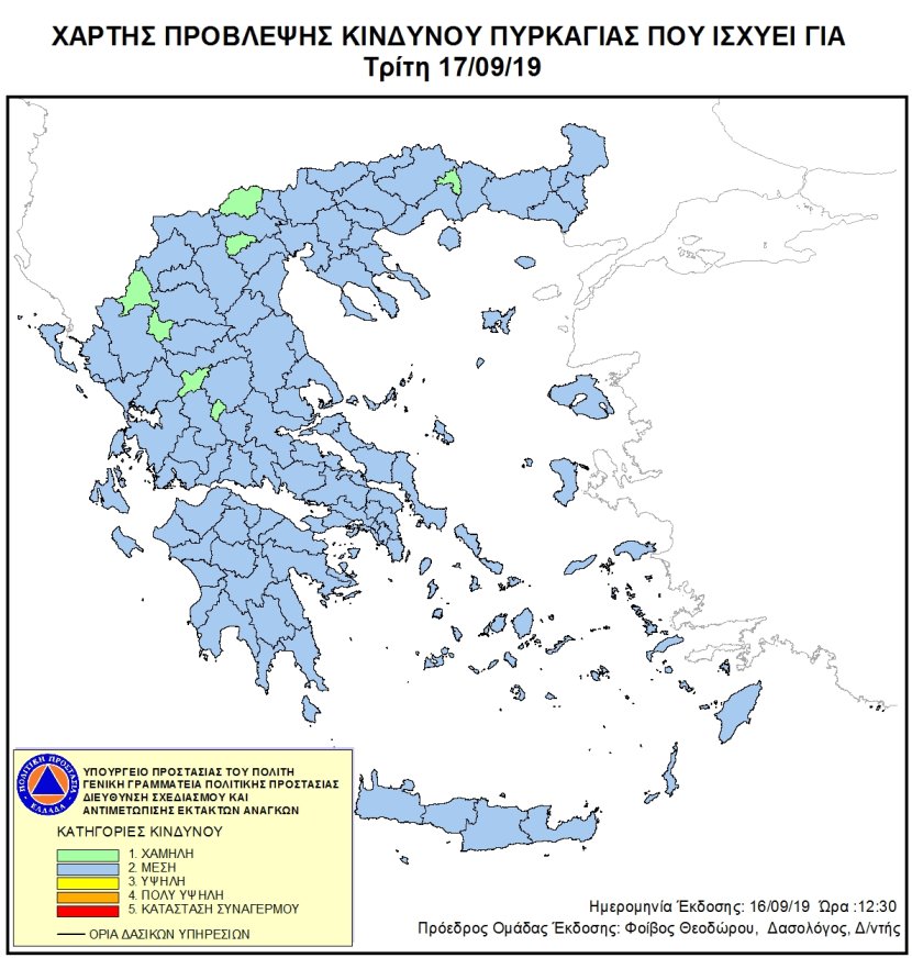 Ημερήσιος Χάρτης Πρόβλεψης Κινδύνου Πυρκαγιάς 16/09/2019