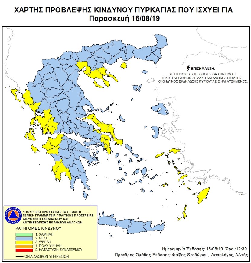 Ημερήσιος Χάρτης Πρόβλεψης Κινδύνου Πυρκαγιάς 16/08/2019