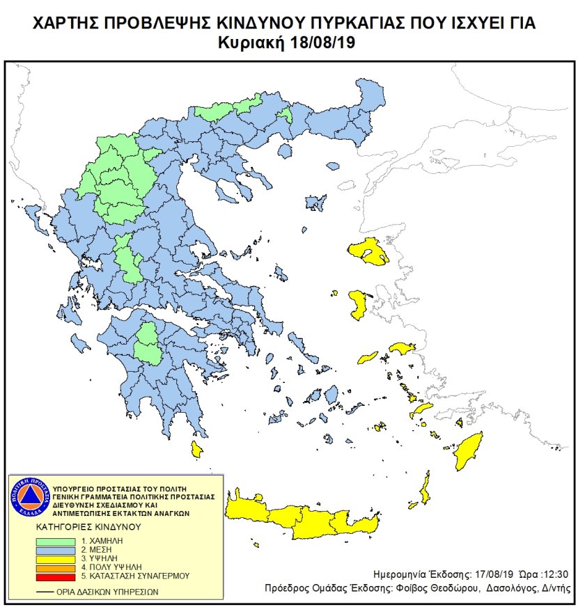 Ημερήσιος Χάρτης Πρόβλεψης Κινδύνου Πυρκαγιάς 19/08/2019