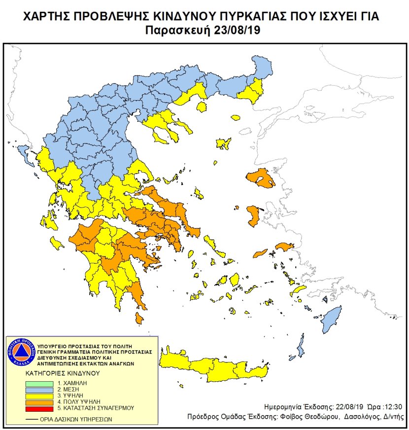 Ημερήσιος Χάρτης Πρόβλεψης Κινδύνου Πυρκαγιάς 23/08/2019