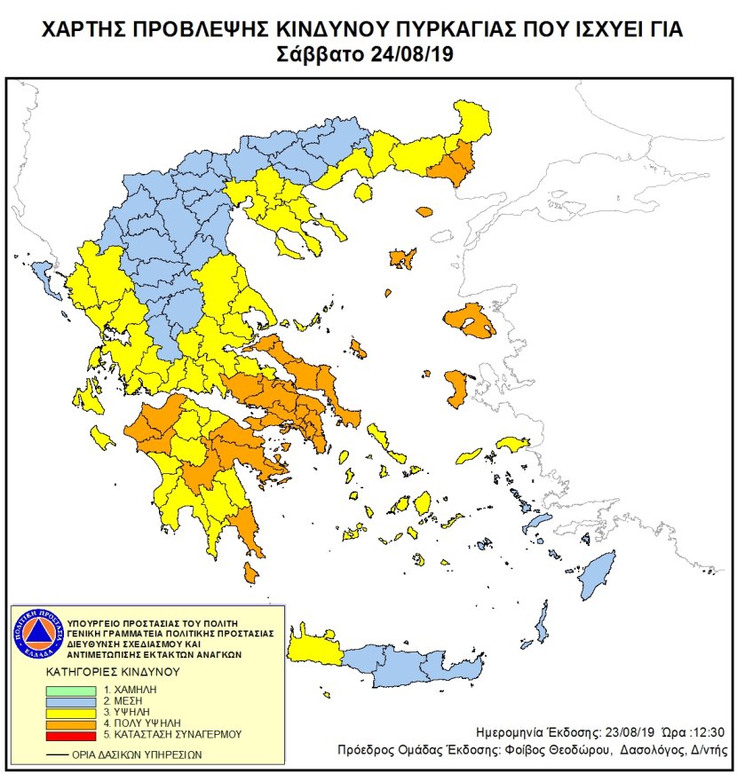 Ημερήσιος Χάρτης Πρόβλεψης Κινδύνου Πυρκαγιάς 24/08/2019