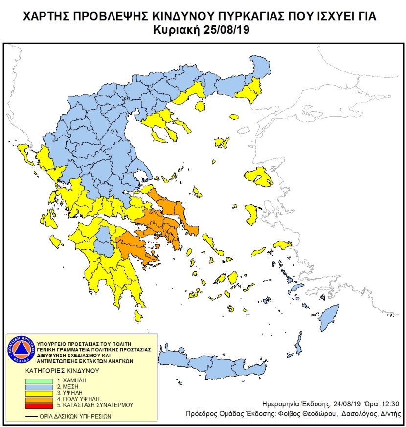 Ημερήσιος Χάρτης Πρόβλεψης Κινδύνου Πυρκαγιάς 25/08/2019