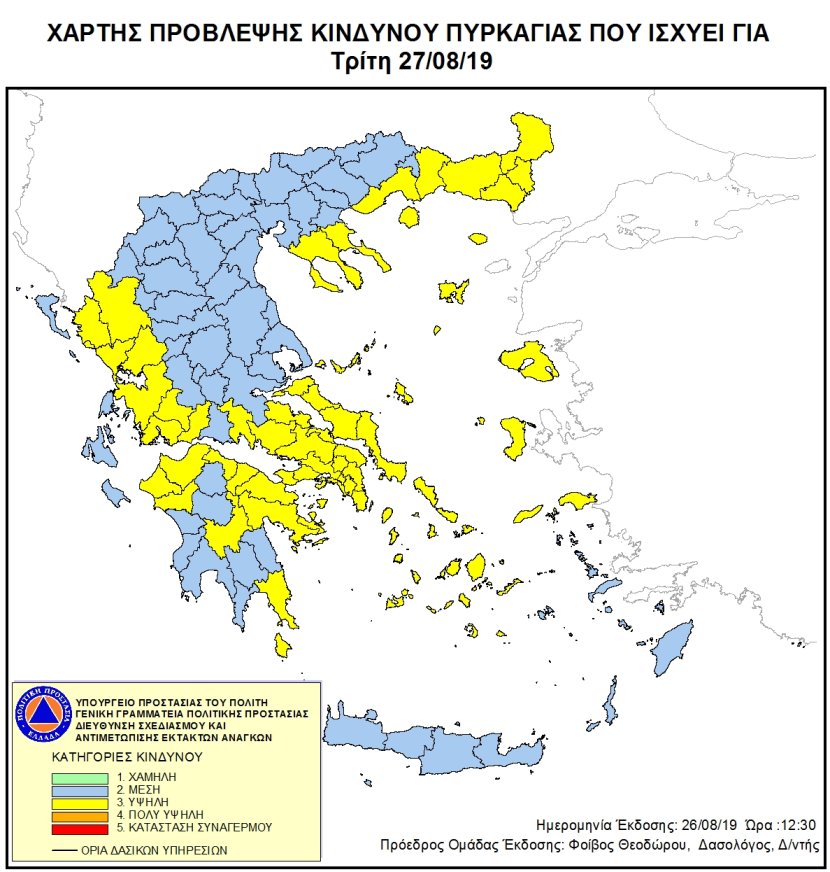Ημερήσιος Χάρτης Πρόβλεψης Κινδύνου Πυρκαγιάς 27/08/2019