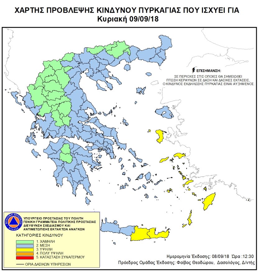 Ημερήσιος Χάρτης Πρόβλεψης Κινδύνου Πυρκαγιάς 08/09/2018