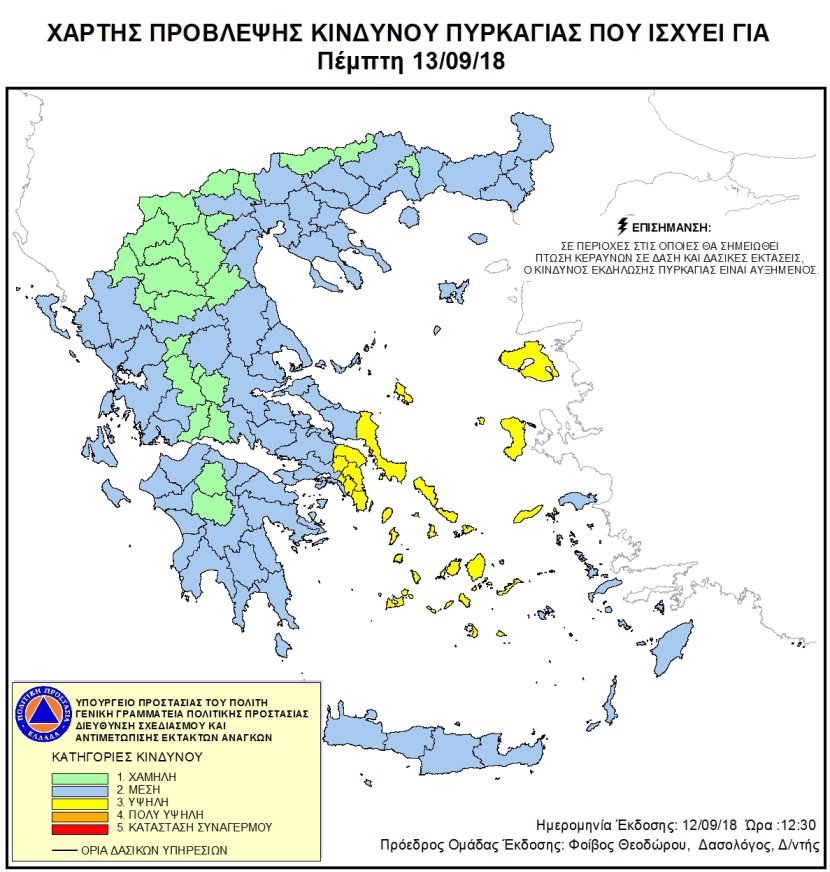 Ημερήσιος Χάρτης Πρόβλεψης Κινδύνου Πυρκαγιάς 13/09/2018