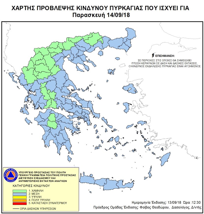 Ημερήσιος Χάρτης Πρόβλεψης Κινδύνου Πυρκαγιάς 14/09/2018