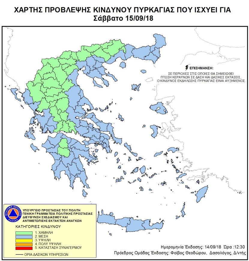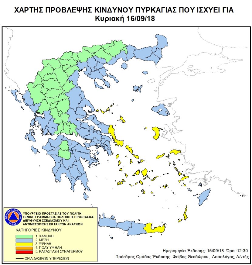 Ημερήσιος Χάρτης Πρόβλεψης Κινδύνου Πυρκαγιάς 15/09/2018