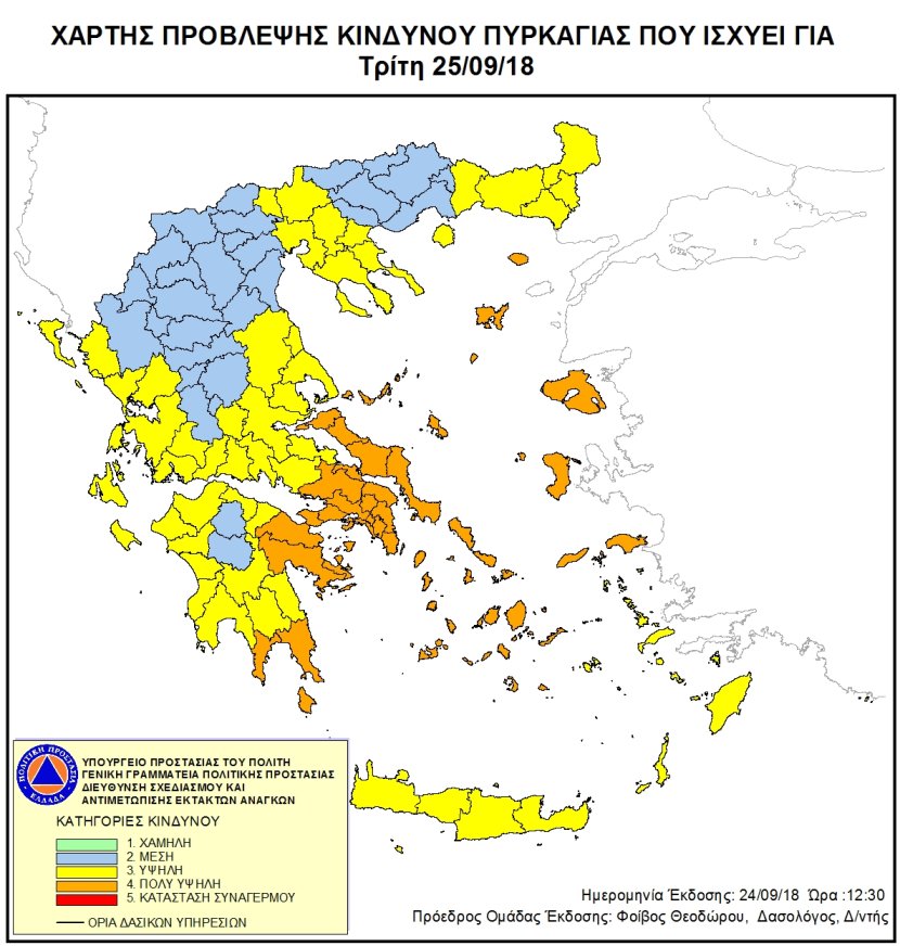 Ημερήσιος Χάρτης Πρόβλεψης Κινδύνου Πυρκαγιάς 25/09/2018