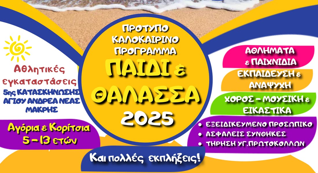 To πρόγραμμα “Παιδί & Θάλασσα 2025” είναι ένα ημερήσιο camp για αγόρια & κορίτσια 5-13 ετών, που περιλαμβάνει προγράμματα εκπαίδευσης και αναψυχής μέσα από ομαδικά παιχνίδια και δραστηριότητες στο ύπαιθρο και τη θάλασσα. Εκτός από τις αθλητικές δραστηριότητες, το πρόγραμμα είναι εμπλουτισμένο με εικαστικές …