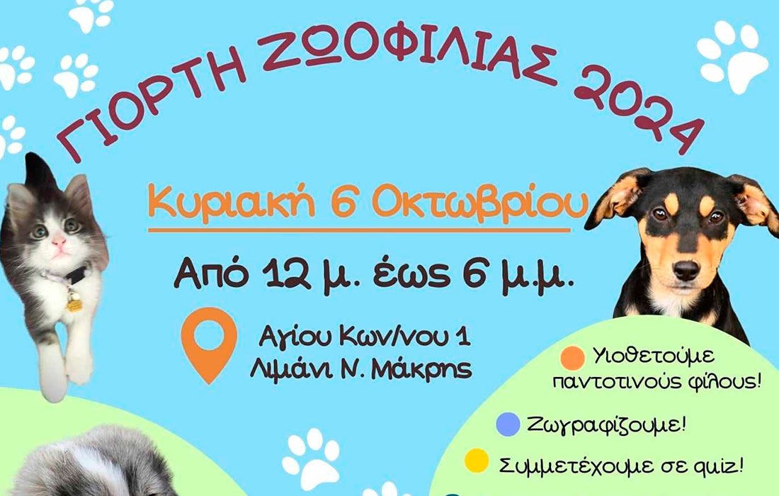 Ενημερώνουμε τους δημότες ότι την ερχόμενη Κυριακή, 23 Μαρτίου 2025, ο Σύλλογος Ζωόφιλων Μαραθώνα “ΕΛΠΙΔΑ” διοργανώνει ημέρα υιοθεσίας σκύλων, στην αρχή της οδού Αγίου Κωνσταντίνου, στο λιμανάκι Νέας Μάκρης. Οι τετράποδοι φίλοι μας, μαζί με τους εθελοντές του συλλόγου, θα μας περιμένουν στο χώρο από τις 12:00 έως και …